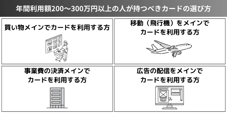 クレジットカードの年間利用額が200~300万円以上の方に向けて、持つべきおすすめのカードをご紹介します。