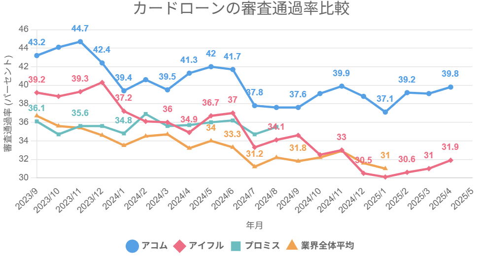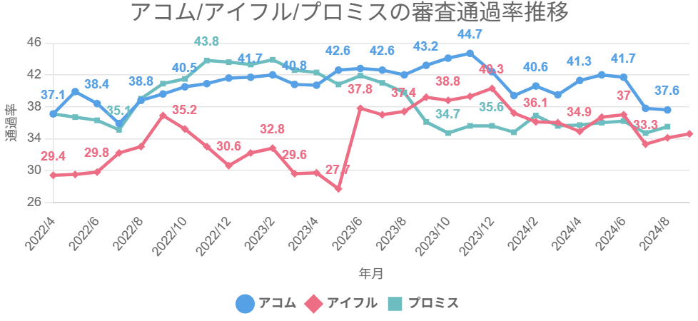 前述したようにアコムは、アイフル・プロミス・アコムのなかで、直近1年間の審査通過率が一番高いです。