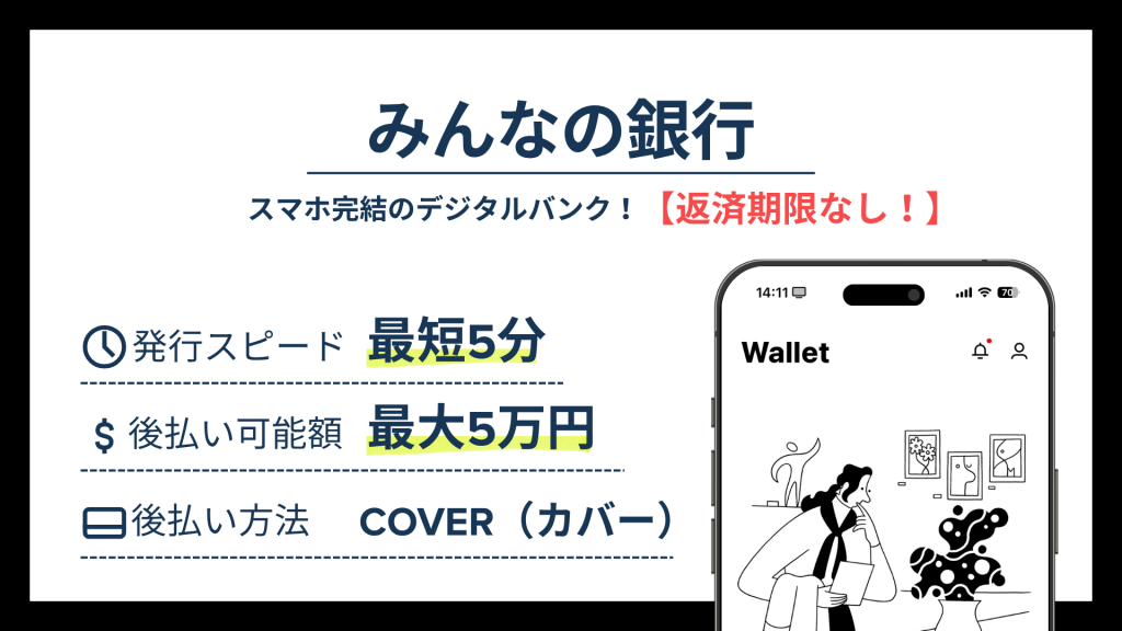 「みんなの銀行 カバー」は、ふくおかフィナンシャルグループ(FFG)の株式会社みんなの銀行が運営するデジタルバンク「みんなの銀行」の後払いサービスです。