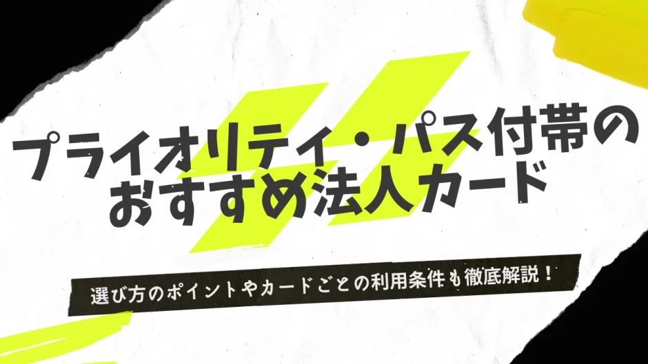 この記事では、プライオリティ・パスが付帯するおすすめの法人カードを9枚紹介します。選び方のポイントや注意点も詳しく解説していますので、ぜひ参考にしてください。