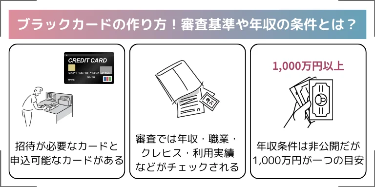 なお、本来の意味でのブラックカードを作りたい方に向けて、気になる審査基準や年収についても併せて説明します。