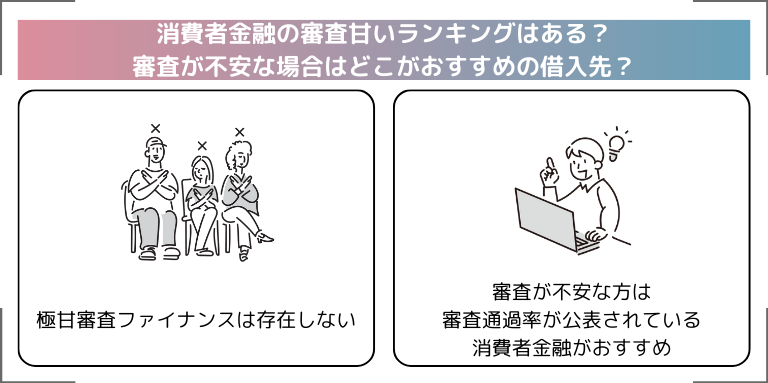 消費者金融で審査が甘いところ、いわゆる「消費者金融の審査甘いランキング」は存在しません。
