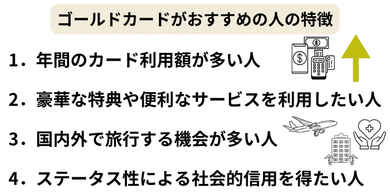 ゴールドカードを持つのがおすすめの人は、以下のような人です。