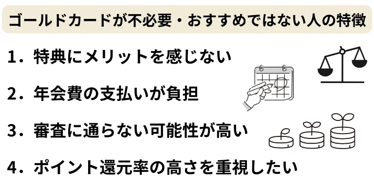 わざわざゴールドカードを持つ必要がない、またはおすすめしない人は、以下のような人です。