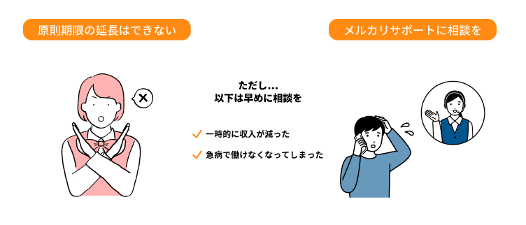 相談すれば期限を延長してもらえるとは限りませんが、少しでも信用を保つためにも、きちんと事情を説明するほうがよいといえます。