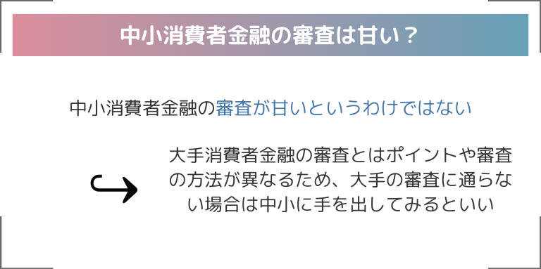そのため、大手消費者金融に比べて、中小消費者金融は審査に通りやすくなっています。