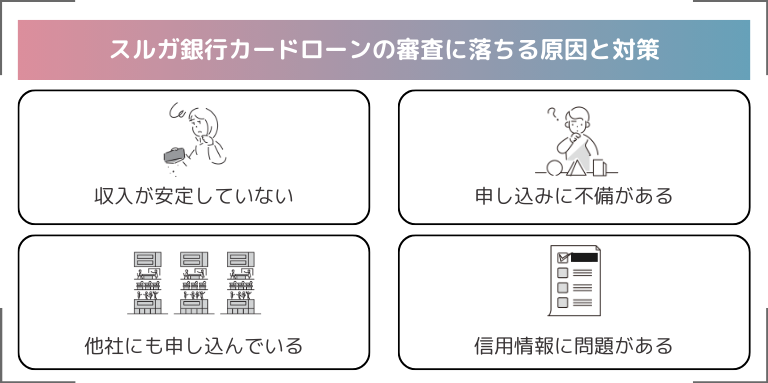 ここでは、それぞれの原因を詳しく見ていきましょう。併せて対策方法についても説明するので、カードローンに申し込む際の参考にしてください。
