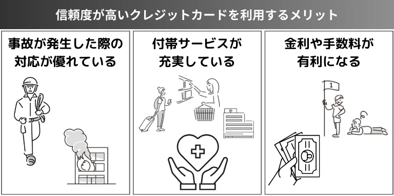 信頼度が高いクレジットカードを利用すれば、以下のようなメリットがあります。